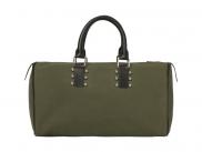 Pierre Launay has afterwards developed a series of luggages and shopping bags having in common a sewn piece surrounded by six round-headed screws in brass, made in Savoy and galvanized with palladium or gold in Paris. Each screw crosses the leather or the cloth but never appears in the inside of the bag, which is lined. The piece itself, which cutting tool has been conceived handcraftly in Paris, is not absolutely symmetrical.
